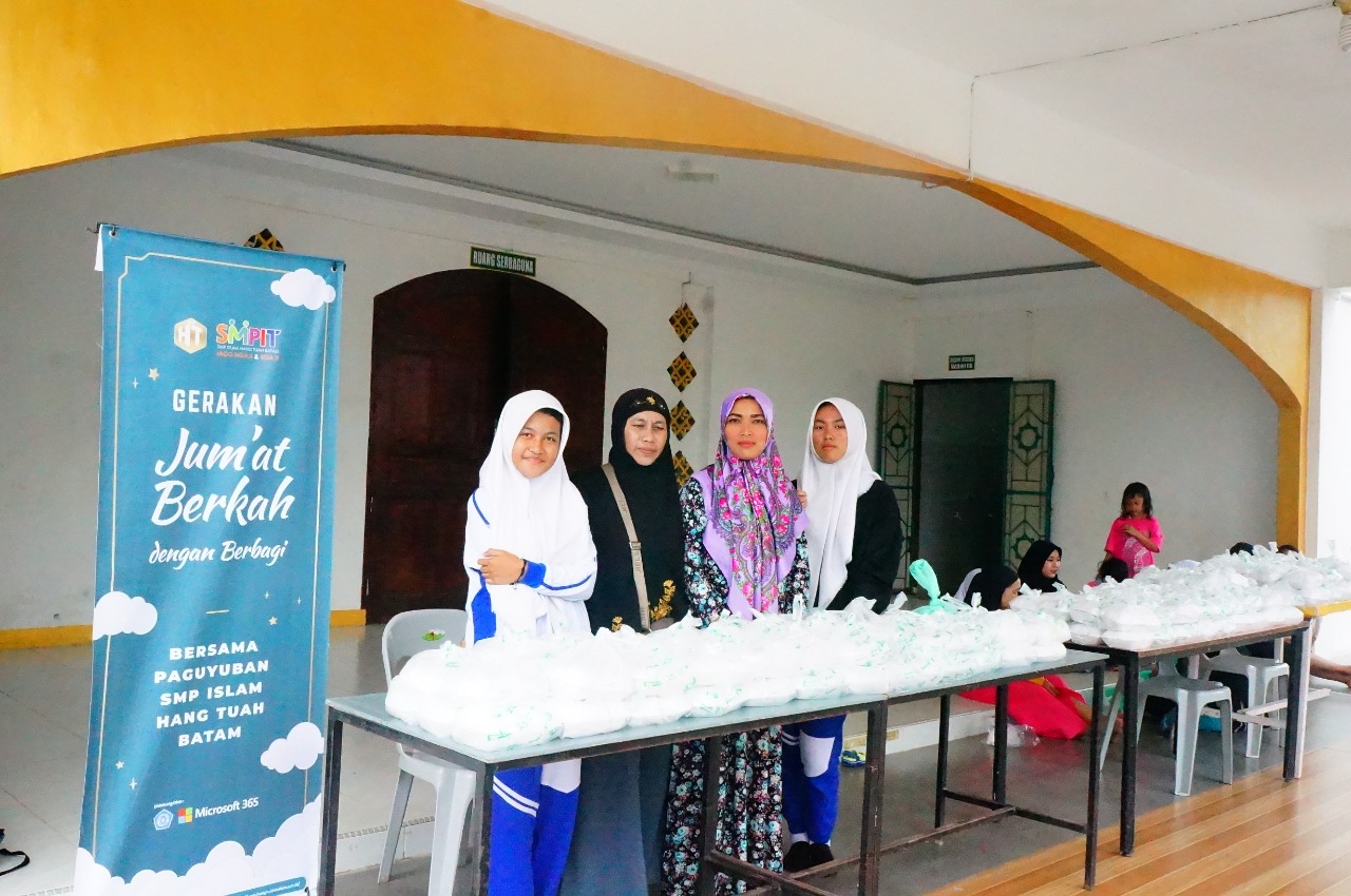 Pada hari Jumat 20 Januari 2023 di Masjid Nurul Hidayah Bengkong Polisi, dengan didampingi oleh guru dan orang tua dari paguyuban kelas, para siswi berbagi rizki berupa nasi bungkus dan kue setelah sholat jum’at kepada para Jamaah. Kegiatan tersebut bertemakan “Gerakan Jumat Berkah”.