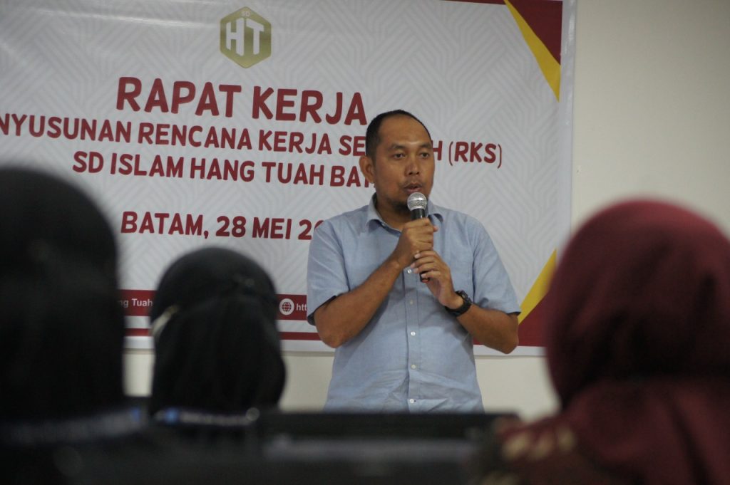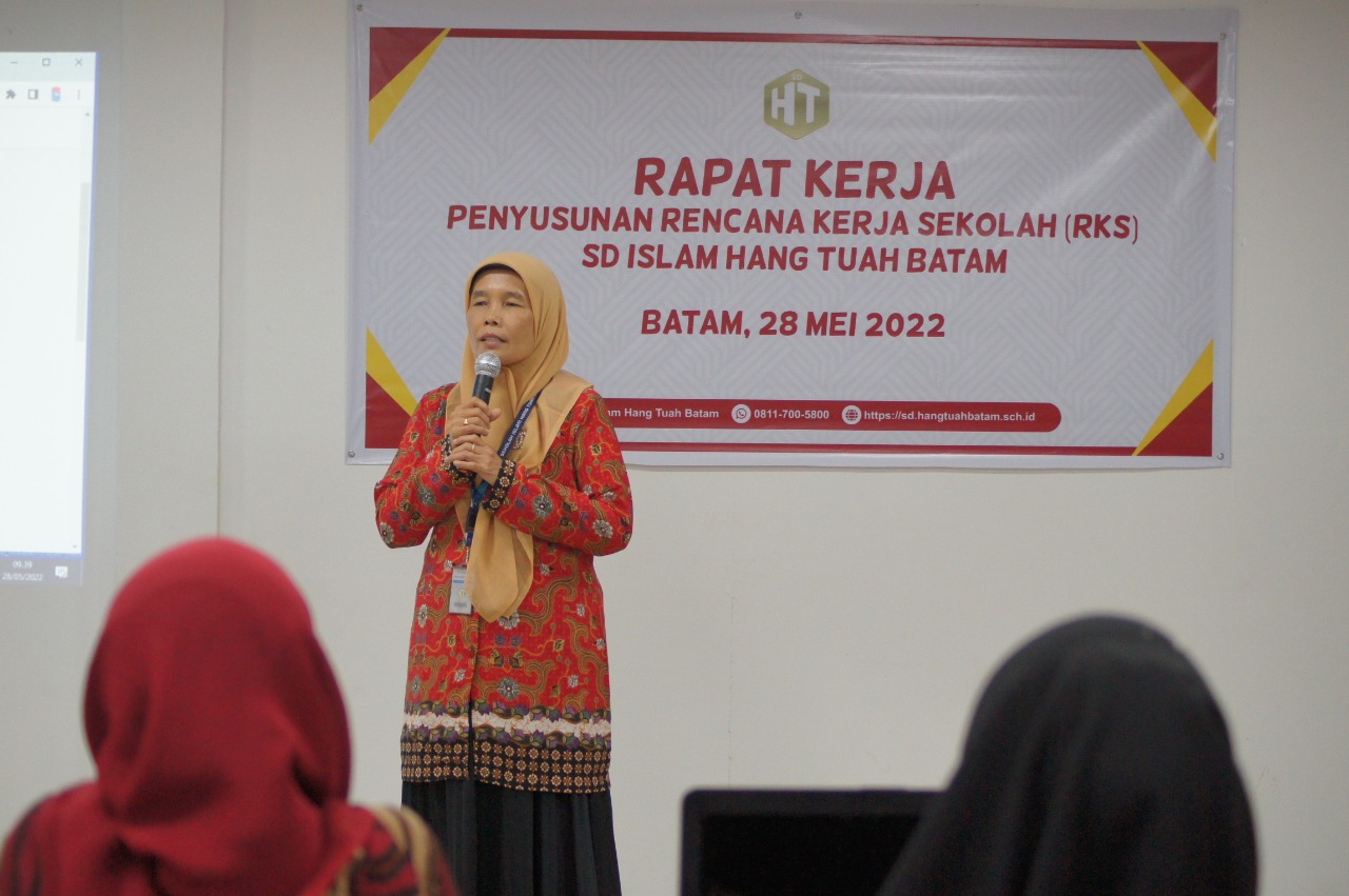 Dikesempatan yang sama, Yenti, S.Pd.SD selaku kepala SD slam Hang Tuah Batam menyampaikan rasa syukurnya, mengingat tahun ini SD Islam Hang Tuah Batam menjadi salah satu sekolah penggerak. Ini merupakan satu pencapaian yang luar bisa, baik bagi Sekolah Islam Hang Tuah Batam maupun pribadi Yenti sendiri. “Dulu, saya pernah berkata di sebuah rapat kerja yang pernah kita laksanakan. Mari kita jadikan sekolah kita ini menjadi sekolah pilihan pertama. Dan hari ini, alhamdulillah terlihat begitu banyak kemajuan yang kita rasakan. Di tahun ajaran baru nanti, kita mendapat kelas tambahan di kelas satu. Ini salah satu bukti bahwa masyarakat saat ini telah melihat kita sebagai sekolah yang mampu bersaing dengan sekolah lainnya. Maka dari itu, Raker ini perlu persiapan yang sangat-sangat matang. Mulai dari penyusunan anggaran dan biaya raker itu sendiri. Mari kita Bersama-sama menjadikan sekolah kita ini semakin maju dan baik kedepannya, dengan cara menetapkan target lulusan atau standar kelulusan yang unggulan. Satu hal yang mampu memotivasi diri saya selama ini, yaitu jangan jadikan kekurangan sebagai hambatan, tapi jadikanlah kekurangan itu sebagai motivasi untuk bisa mendapatkan sesuatu yang lebih baik lagi.”